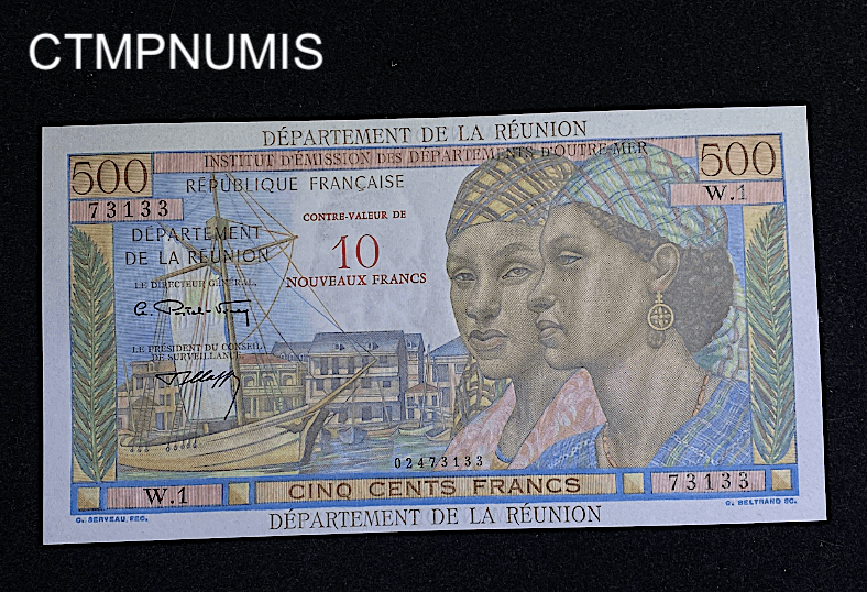 • ,BILLET,REUNION,10,NOUVEAUX,FRANCS,SUR,500, BILLET DEPARTEMENT DE LA REUNION 10 NF SURCHARGE SUR 500 FRANCS W.1 NEUF 340.00€