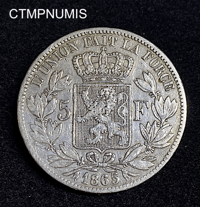 • ,MONNAIE,BELGIQUE,5,FRANCS,ARGENT,1865, MONNAIE BELGIQUE 5 FRANCS ARGENT LEOPOLD II 1865 95.00€