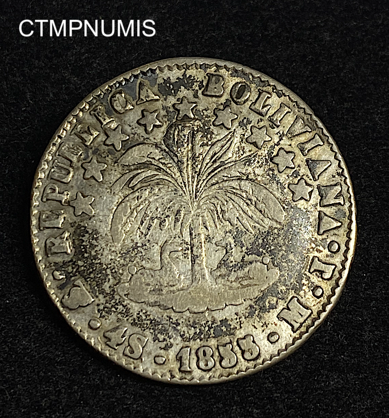 MONNAIE BOLIVIE 4 SOLES ARGENT 1855 MJ