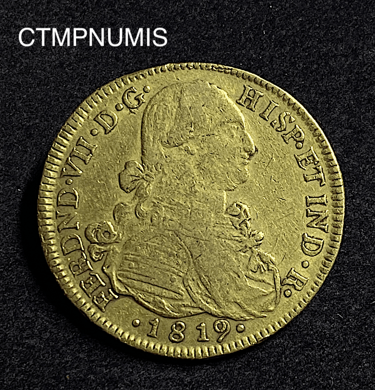 MONNAIE COLOMBIE 8 ESCUDOS OR FERDINAND VII 1819 SANTA FE DE NUEVO REINO