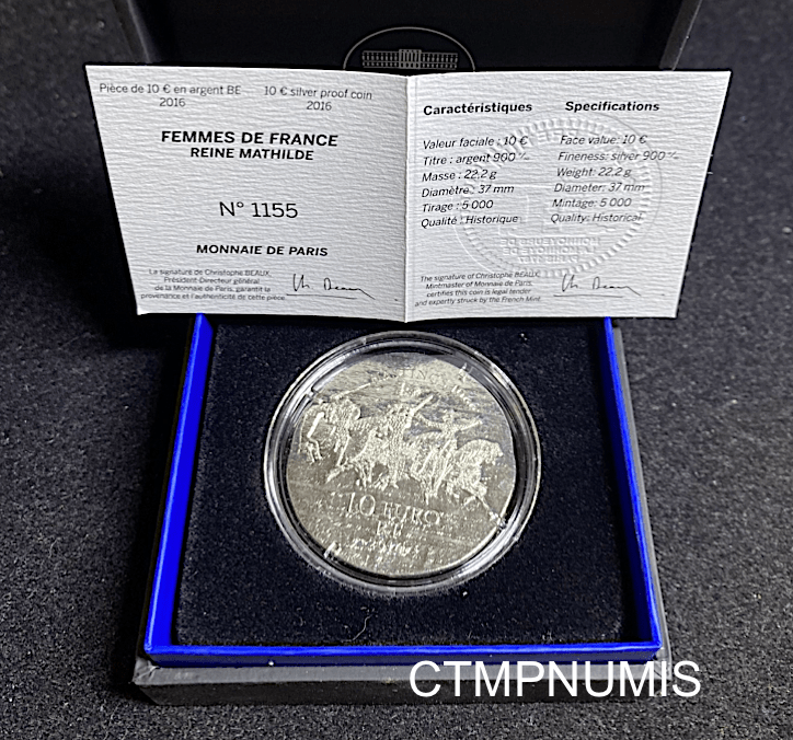 MONNAIE DE PARIS 10 EURO ARGENT REINE MATHILDE 2016 FDC 22,2 gr