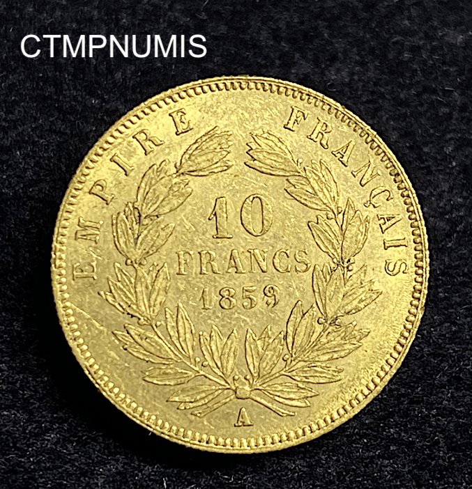 MONNAIE EMPIRE 10 FRANCS OR NAPOLEON III 1859 A PARIS TTB+