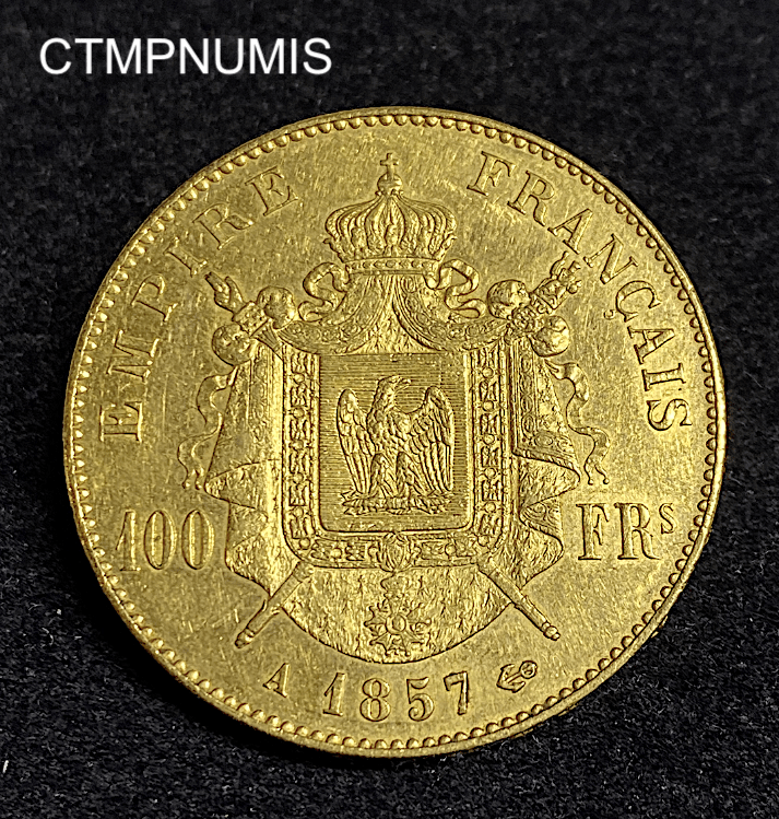 MONNAIE EMPIRE 100 FRANCS OR NAPOLEON III TETE NUE 1857 A PARIS