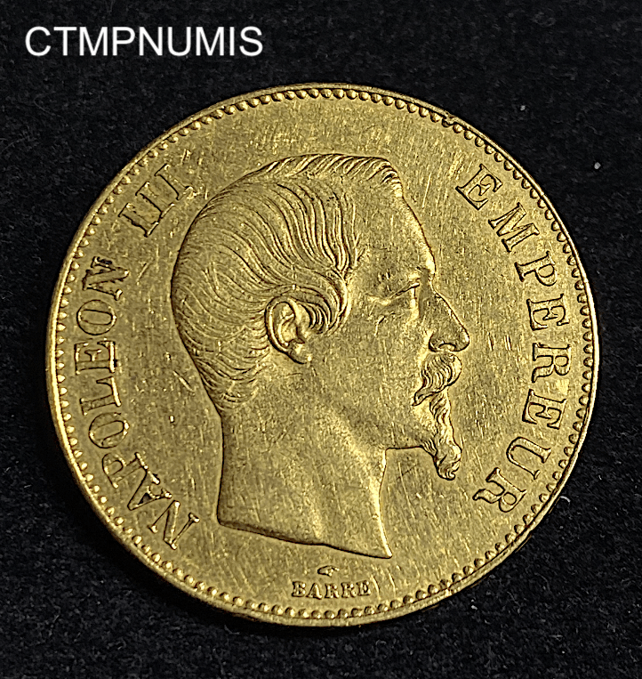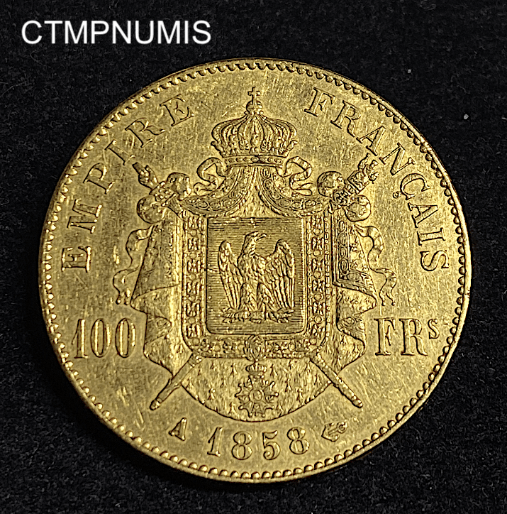 • ,MONNAIE,100,FRANCS,OR,NAPOLEON,III,1858, MONNAIE EMPIRE 100 FRANCS OR NAPOLEON III TETE NUE 1858 A PARIS 3,460.00€