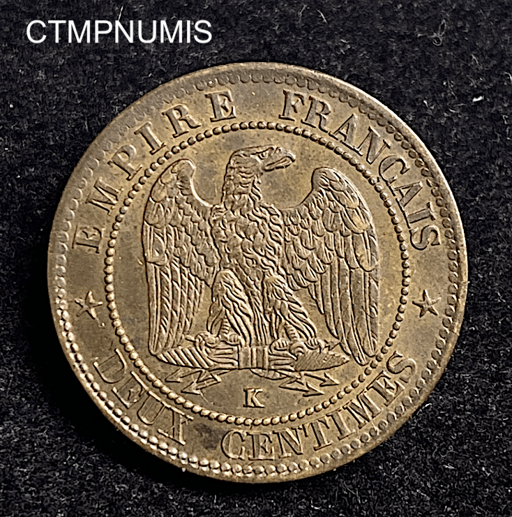 MONNAIE EMPIRE 2 CENTIMES NAPOLEON III TETE NUE 1853 K BORDEAUX