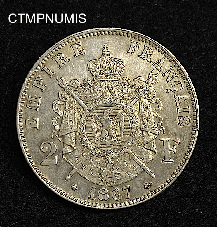 MONNAIE EMPIRE 2 FRANCS ARGENT NAPOLEON III 1867 A PARIS TTB+