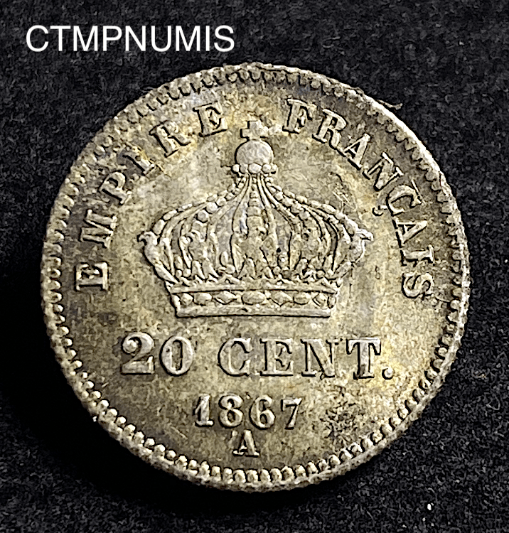 MONNAIE EMPIRE 20 CENTIMES ARGENT NAPOLEON III 1867 A PARIS SUP+