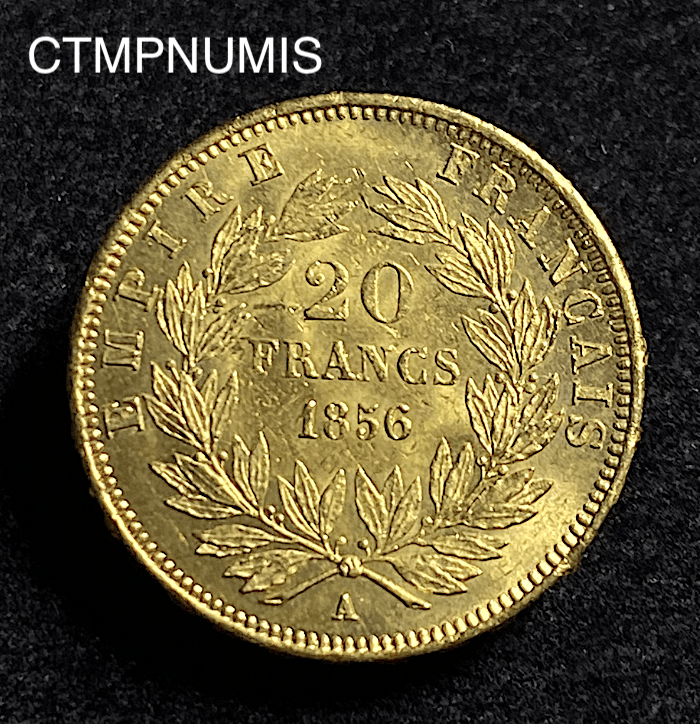 MONNAIE EMPIRE 20 FRANCS OR NAPOLEON III 1856 A PARIS SUP+