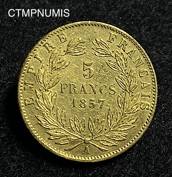 MONNAIE EMPIRE 5 FRANCS OR NAPOLEON III 1857 A PARIS