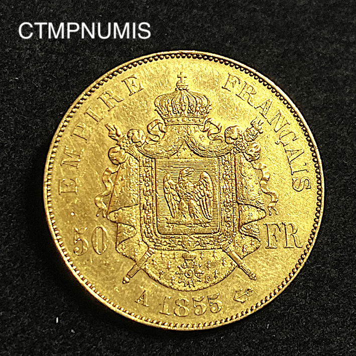 MONNAIE EMPIRE 50 FRANCS OR NAPOLEON III 1855 A PARIS