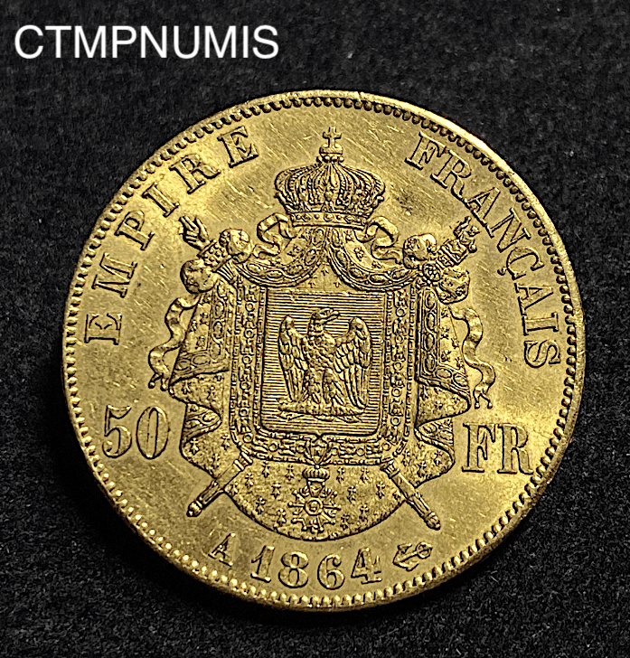 • ,MONNAIE,50,FRANCS,OR,NAPOLEON,1864, MONNAIE EMPIRE 50 FRANCS OR NAPOLEON III TETE LAUREE 1864 A PARIS 1,860.00€