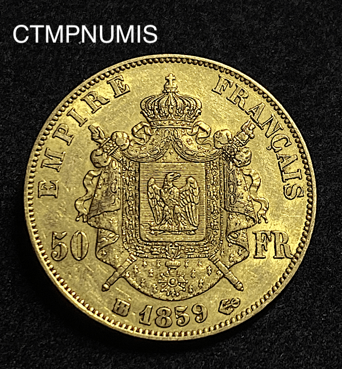 MONNAIE EMPIRE 50 FRANCS OR NAPOLEON III TETE NUE 1859 BB STRASBOURG