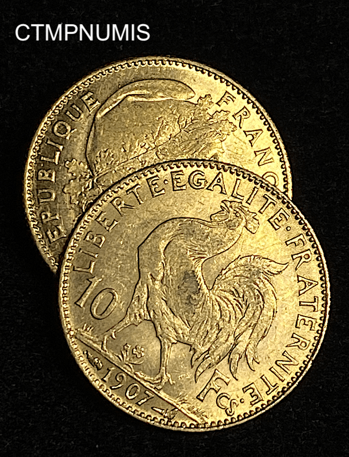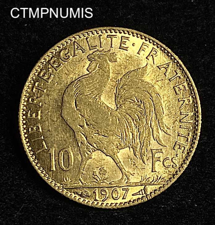 ,MONNAIE,10,FRANCS,OR,COQ,1907,