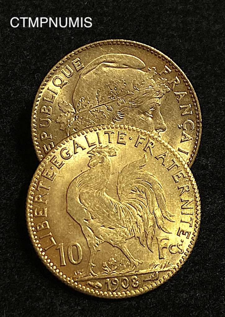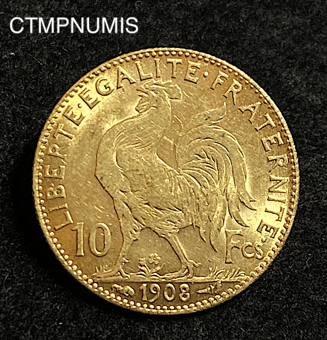 • ,MONNAIE,10,FRANCS,OR,COQ,1908, MONNAIE FRANCAISE 10 FRANCS OR COQ 1908 430.00€