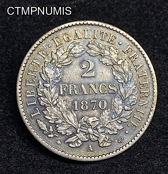 MONNAIE FRANCAISE 2 FRANCS ARGENT CERES 1870 A PARIS BELLE PATINE SUP