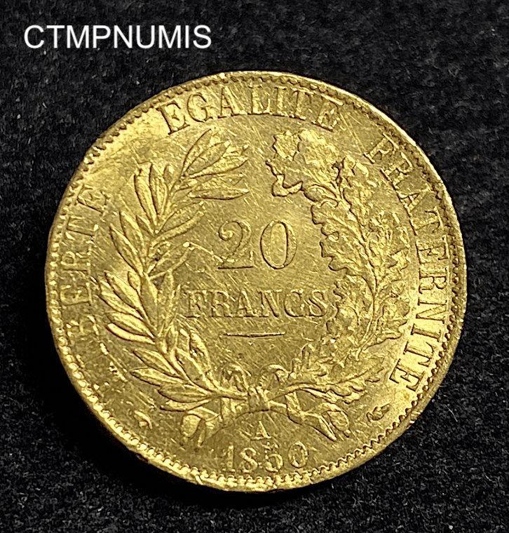 MONNAIE FRANCAISE 20 FRANCS OR CERES II° REPUBLIQUE 1850 A PARIS