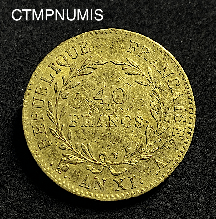 MONNAIE FRANCAISE 40 FRANCS OR BONAPARTE PREMIER CONSUL AN XI A PARIS