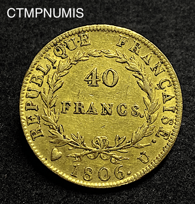 MONNAIE FRANCAISE 40 FRANCS OR NAPOLEON EMPEREUR 1806 U TURIN