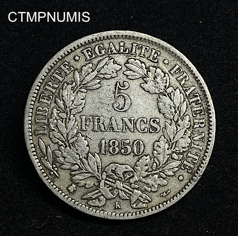MONNAIE FRANCAISE 5 FRANCS ARGENT CERES II° REPUBLIQUE 1850 K BORDEAUX RARE