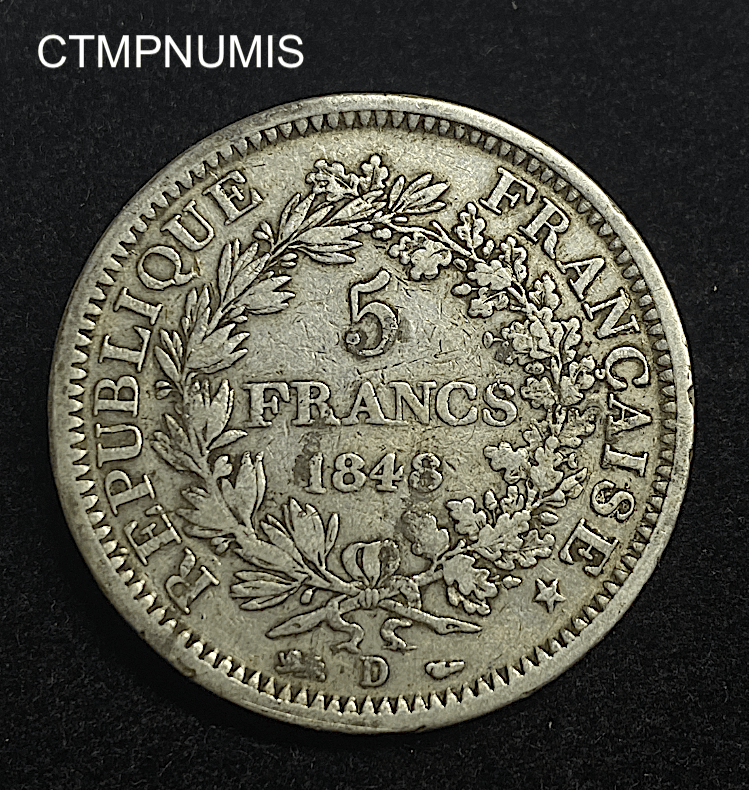 • ,MONNAIE,5,FRANCS,ARGENT,1848,D,LYON, MONNAIE FRANCAISE 5 FRANCS ARGENT HERCULE II° REPUBLIQUE 1848 D LYON RARE 150.00€