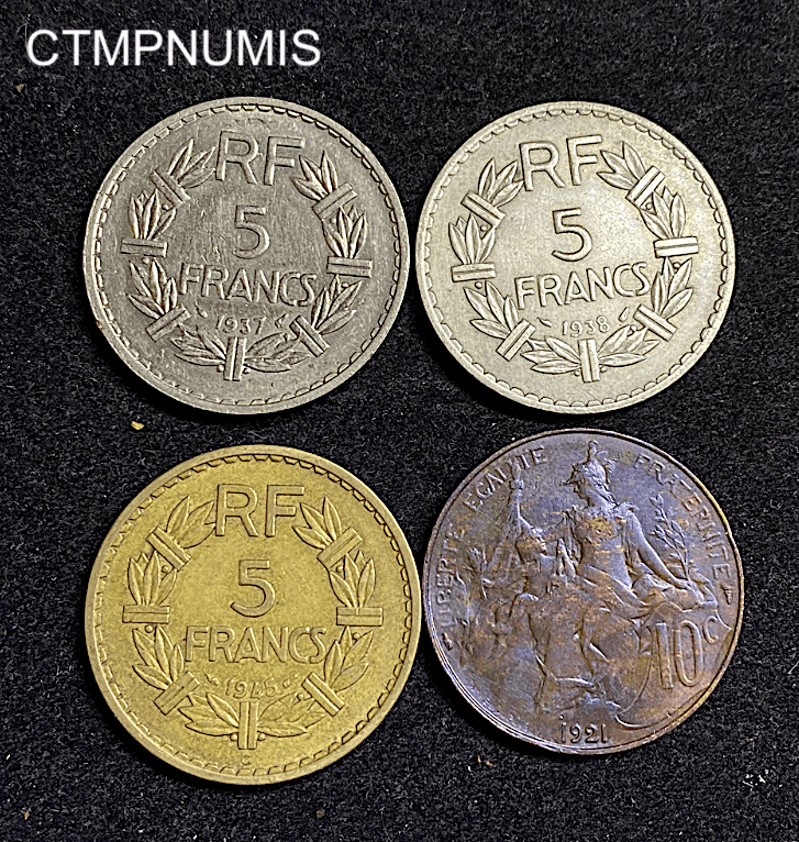 MONNAIE FRANCAISE LOT DE 4 MONNAIES DATES PEU COMMUNES