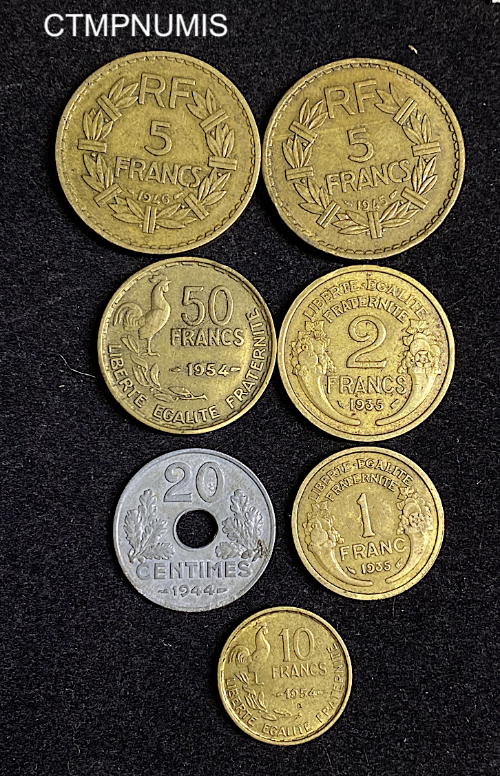 MONNAIE FRANCAISE LOT DE 7 MONNAIES DATES PEU COMMUNES