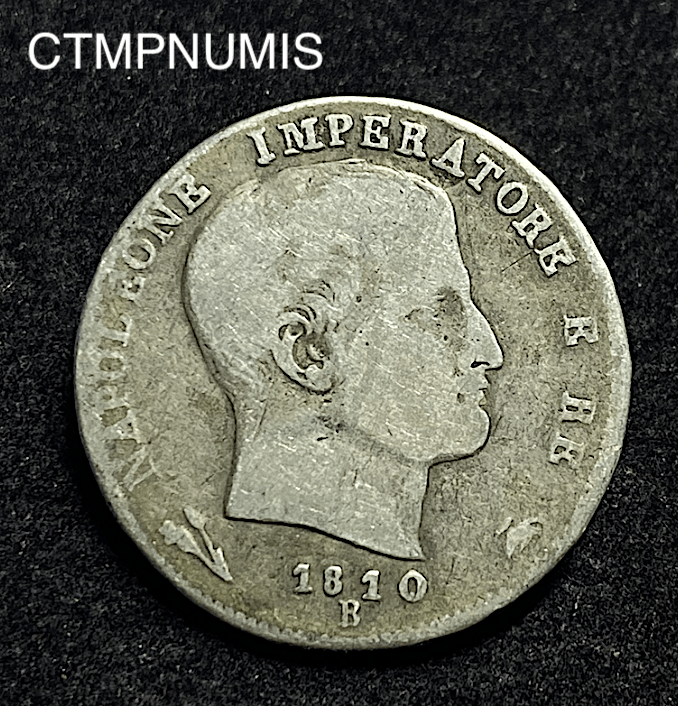 MONNAIE ITALIE 1 LIRE ARGENT NAPOLEON EMPEREUR 1810 B BOLOGNE