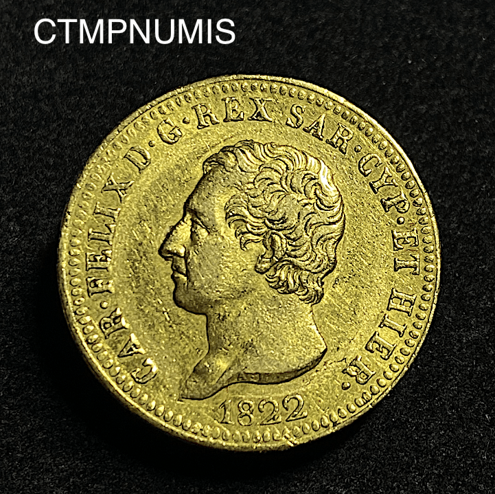 • ,MONNAIE,ITALIE,40,LIRE,OR,1822,TURIN, MONNAIE ITALIE 40 LIRE OR CHARLES FELIX 1822 TURIN SARDAIGNE 1,800.00€