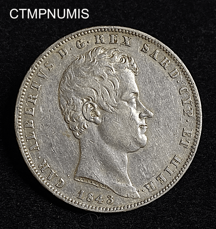 MONNAIE ITALIE 5 LIRE ARGENT CHARLES ALBERT SARDAIGNE 1843 GENES TTB