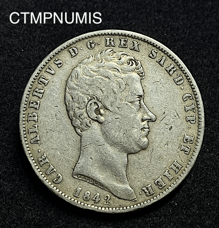 • ,MONNAIE,ITALIE,5,LIRE,ARGENT,CHARLES,1842,GENES, MONNAIE ITALIE SARDAIGNE 5 LIRE ARGENT CHARLES ALBERT 1842 GENES 85.00€