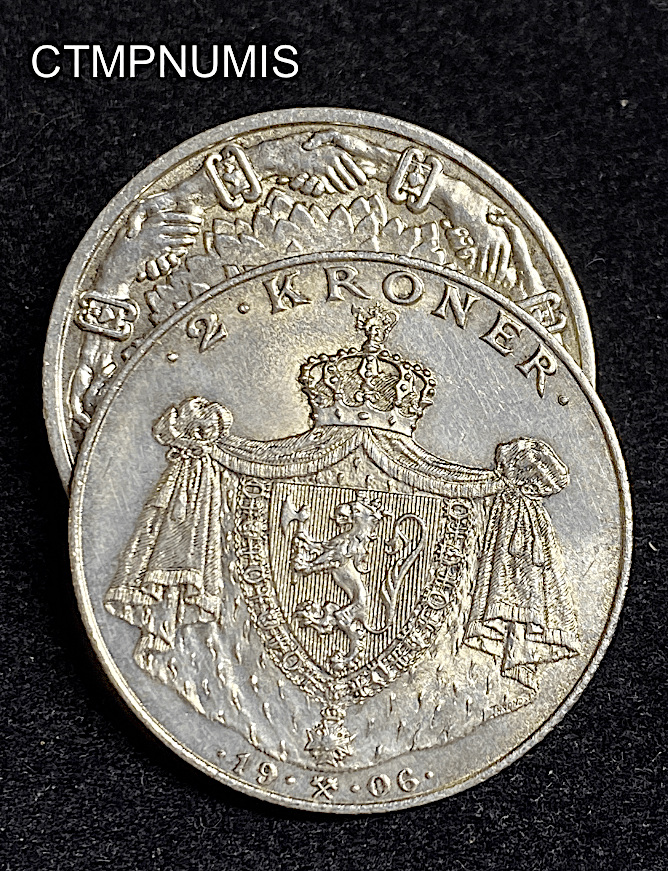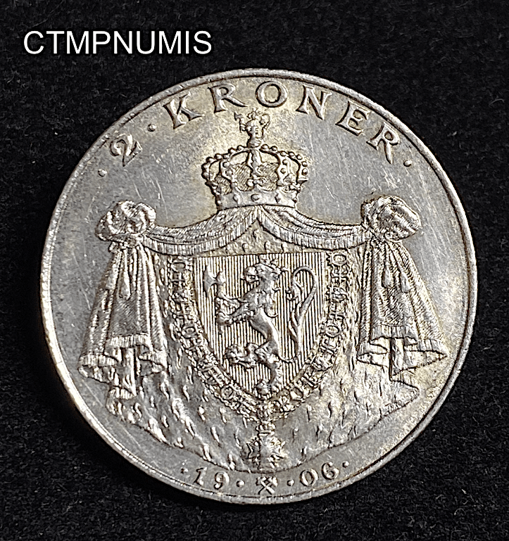 • ,MONNAIE,NORVEGE,2,KRONER,1906,ARGENT, MONNAIE NORVEGE 2 KRONER ARGENT 1906 SUP 95.00€