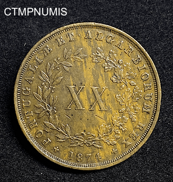 • ,MONNAIE,PORTUGAL,LOUIS,XX,REIS,1874, MONNAIE PORTUGAL XX REIS BRONZE LOUIS I° 1874 TTB+ 35.00€