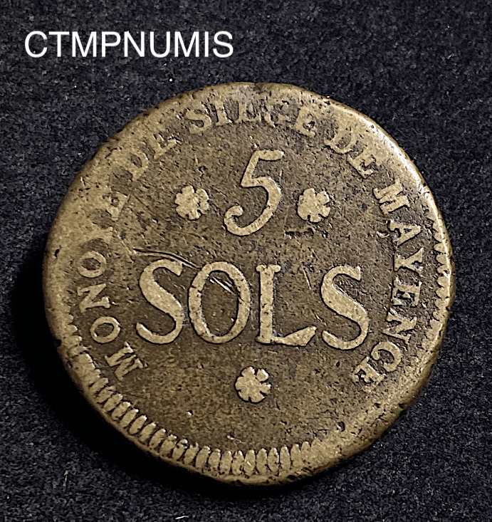 • ,MONNAIE,REVOLUTION,5,SOLS,SIEGE,DE,MAYENCE,1793, MONNAIE REVOLUTION 5 SOLS SIEGE DE MAYENCE 1793 110.00€