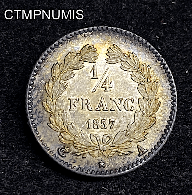 MONNAIE ROYALE 1/4 DE FRANC ARGENT LOUIS PHILIPPE 1837 A PARIS SPL