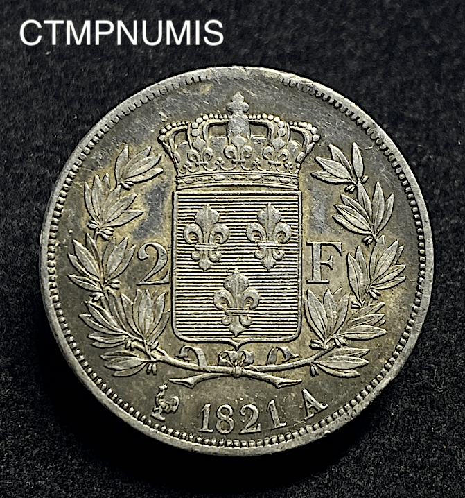 MONNAIE ROYALE 2 FRANCS ARGENT LOUIS XVIII 1821 A PARIS SUP