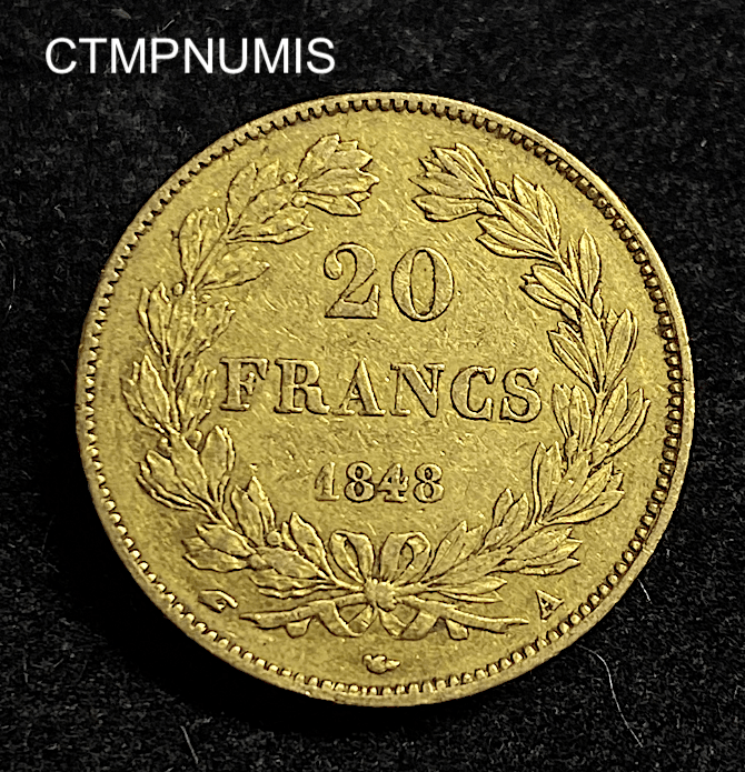 • ,MONNAIE,20,FRANCS,OE,LOUIS,PHILIPPE,1848, MONNAIE ROYALE 20 FRANCS OR LOUIS PHILIPPE 1848 A PARIS 750.00€