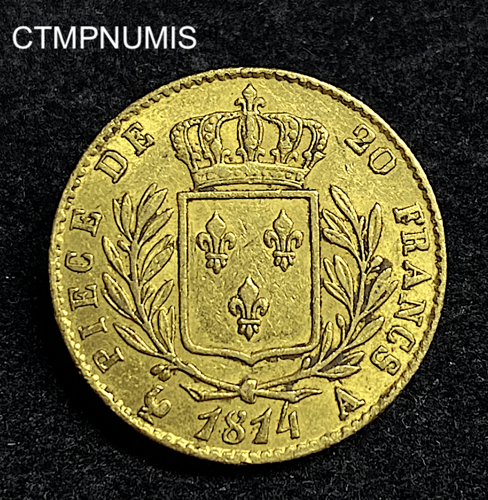 MONNAIE ROYALE 20 FRANCS OR LOUIS XVIII 1814 A PARIS
