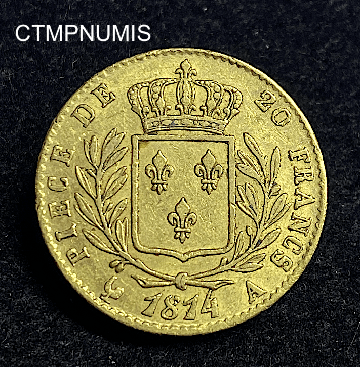 MONNAIE ROYALE 20 FRANCS OR LOUIS XVIII 1814 A PARIS