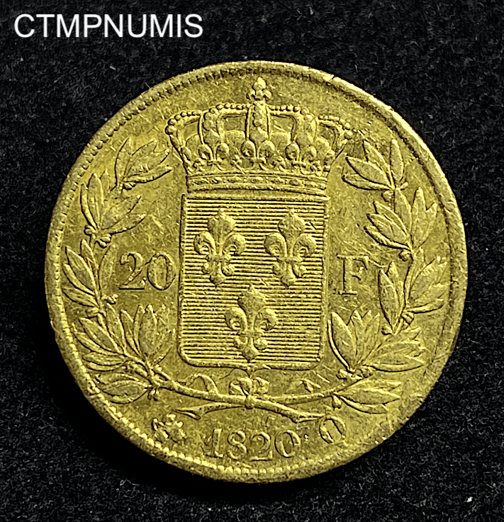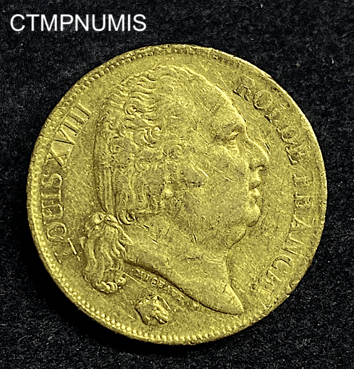 MONNAIE ROYALE 20 FRANCS OR LOUIS XVIII 1820 Q PERPIGNAN