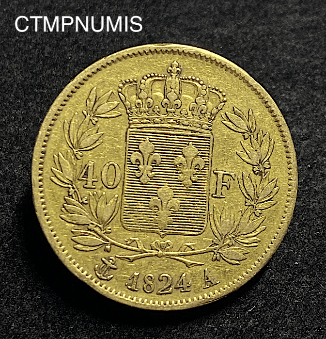 MONNAIE ROYALE 40 FRANCS OR CHARLES X 1824 A PARIS