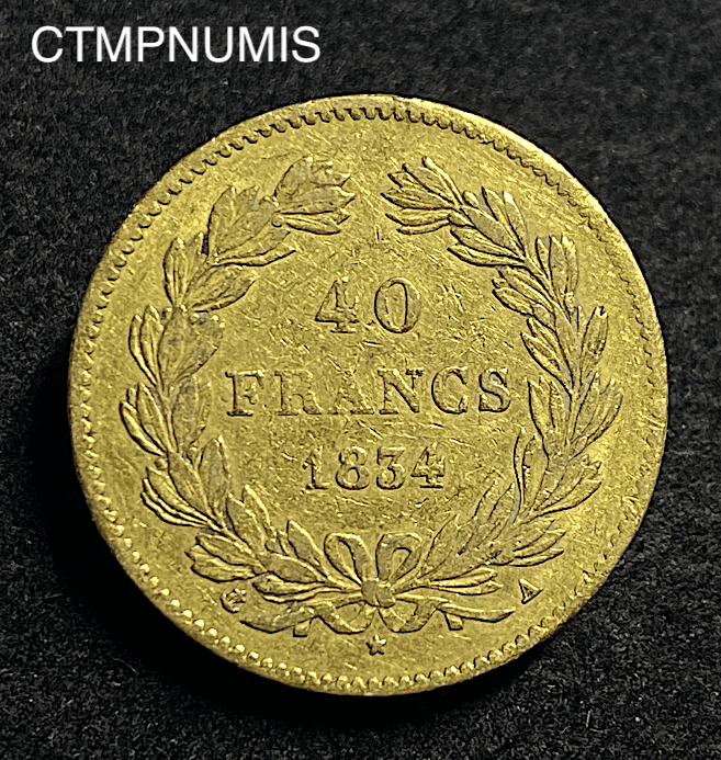 MONNAIE ROYALE 40 FRANCS OR LOUIS PHILIPPE 1834 A PARIS