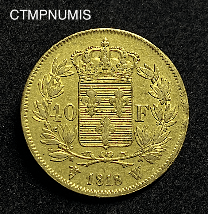 MONNAIE ROYALE 40 FRANCS OR LOUIS XVIII 1818 W LILLE