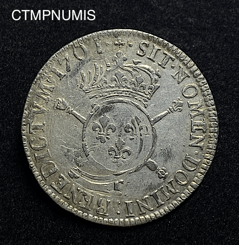 MONNAIE ROYALE LOUIS XIV 1/2 ECU ARGENT AUX INSIGNES 1701 T NANTES