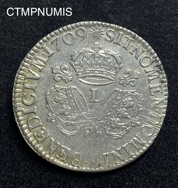 MONNAIE ROYALE LOUIS XIV ECU ARGENT AUX 3 COURONNES 1709 D LYON