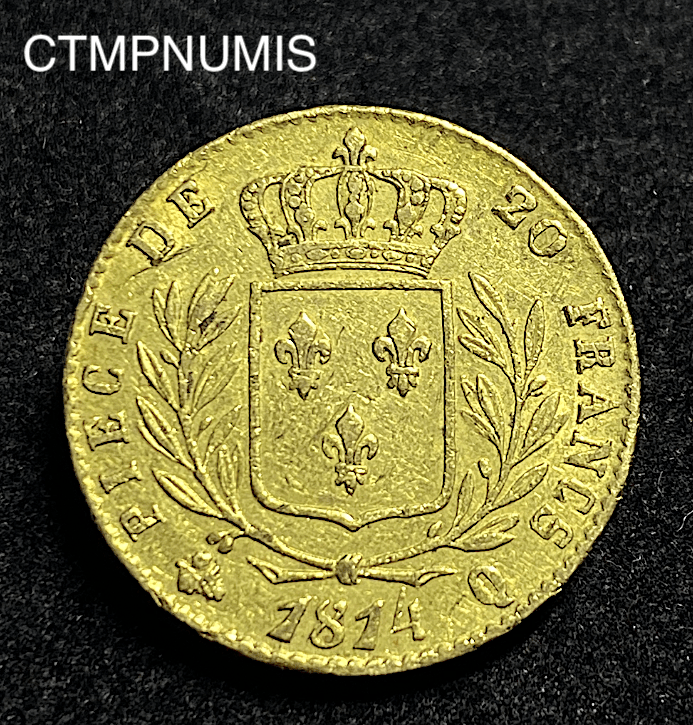 • ,MONNAIE,20,FRANCS,OR,LOUIS,XVIII,1814,Q,PERPIGNAN, MONNAIE ROYALE LOUIS XVIII 20 FRANCS OR 1814 Q PERPIGNAN 830.00€