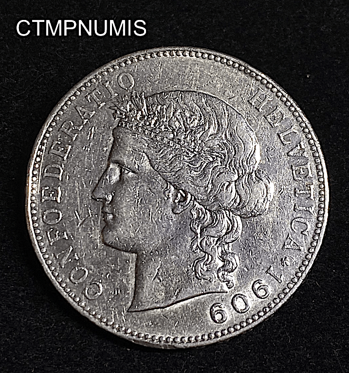 • ,MONNAIE,SUISSE,5,FRANCS,ARGENT,1909, MONNAIE SUISSE 5 FRANCS ARGENT HELVETIA 1909 B BERNE LEGEREMENT NETTOYEE 85.00€