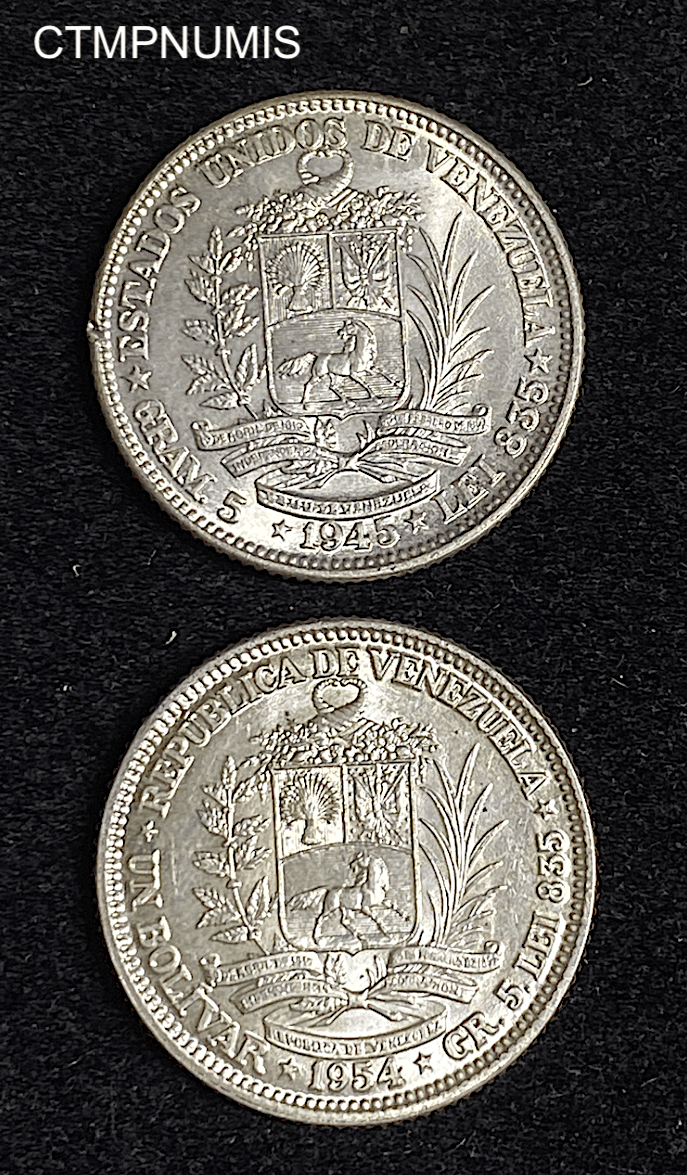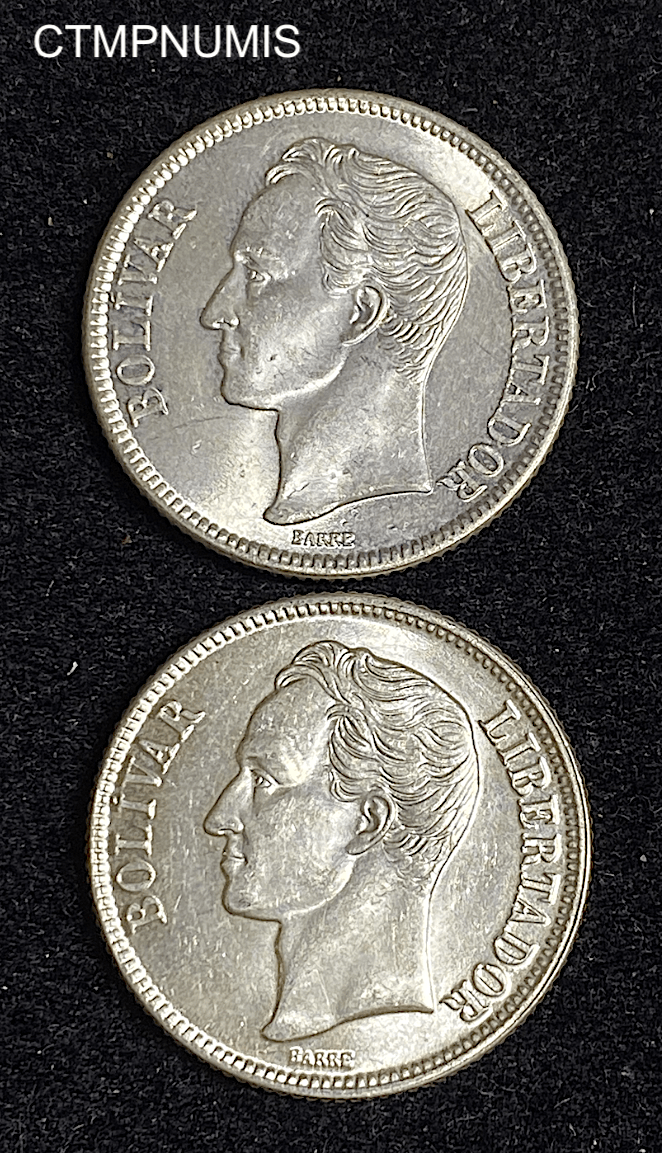 MONNAIE VENEZUELA 1 BOLIVAR ARGENT 1845 1854 SPL LES 2 EXEMPLAIRES