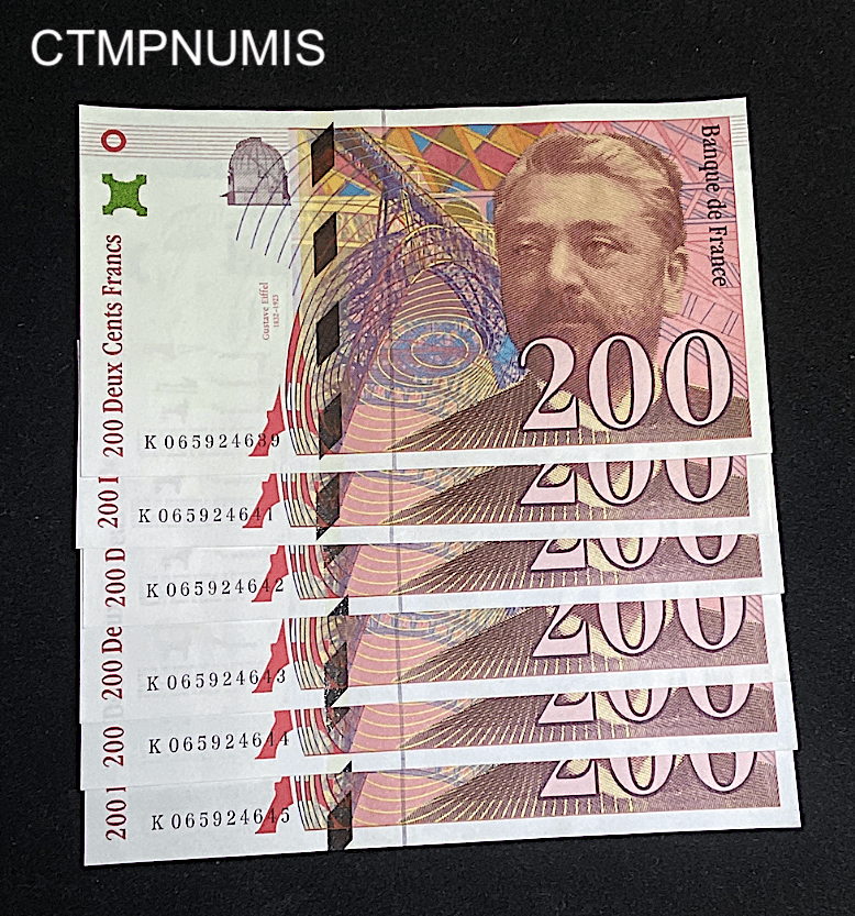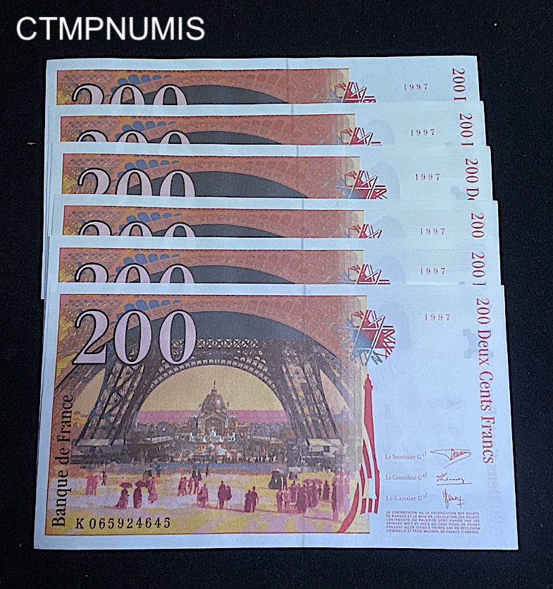 BILLAET FRANCAIS 200 FRANCS EIFFEL 1997 LOT DE 6 EXEMPLAIRES