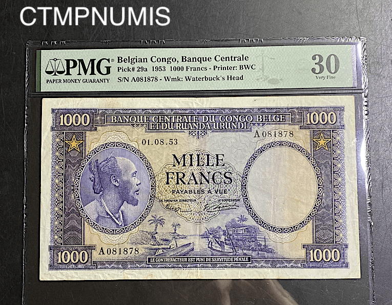 BILLET CONGO BELGE BANQUE CENTRALE DU 01/08/1953 VF.30 RARE