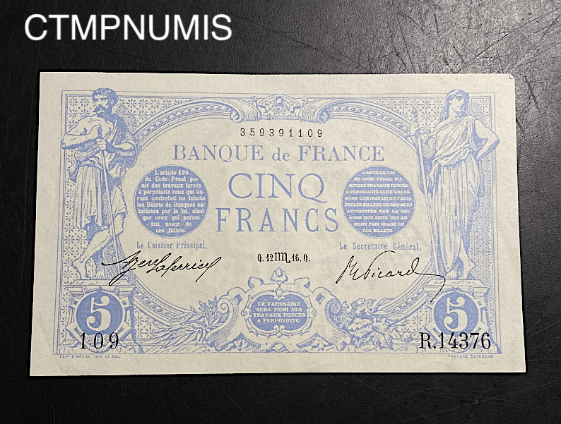 BILLET FRANCAIS 5 FRANCS BLEU 12 AOUT 1916 VIERGE NEUF